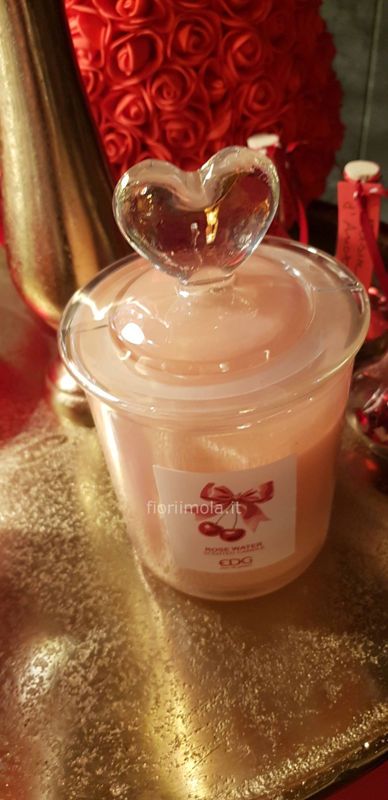 Candela profumata "Rose Water" con coperchio a cuore in vetro