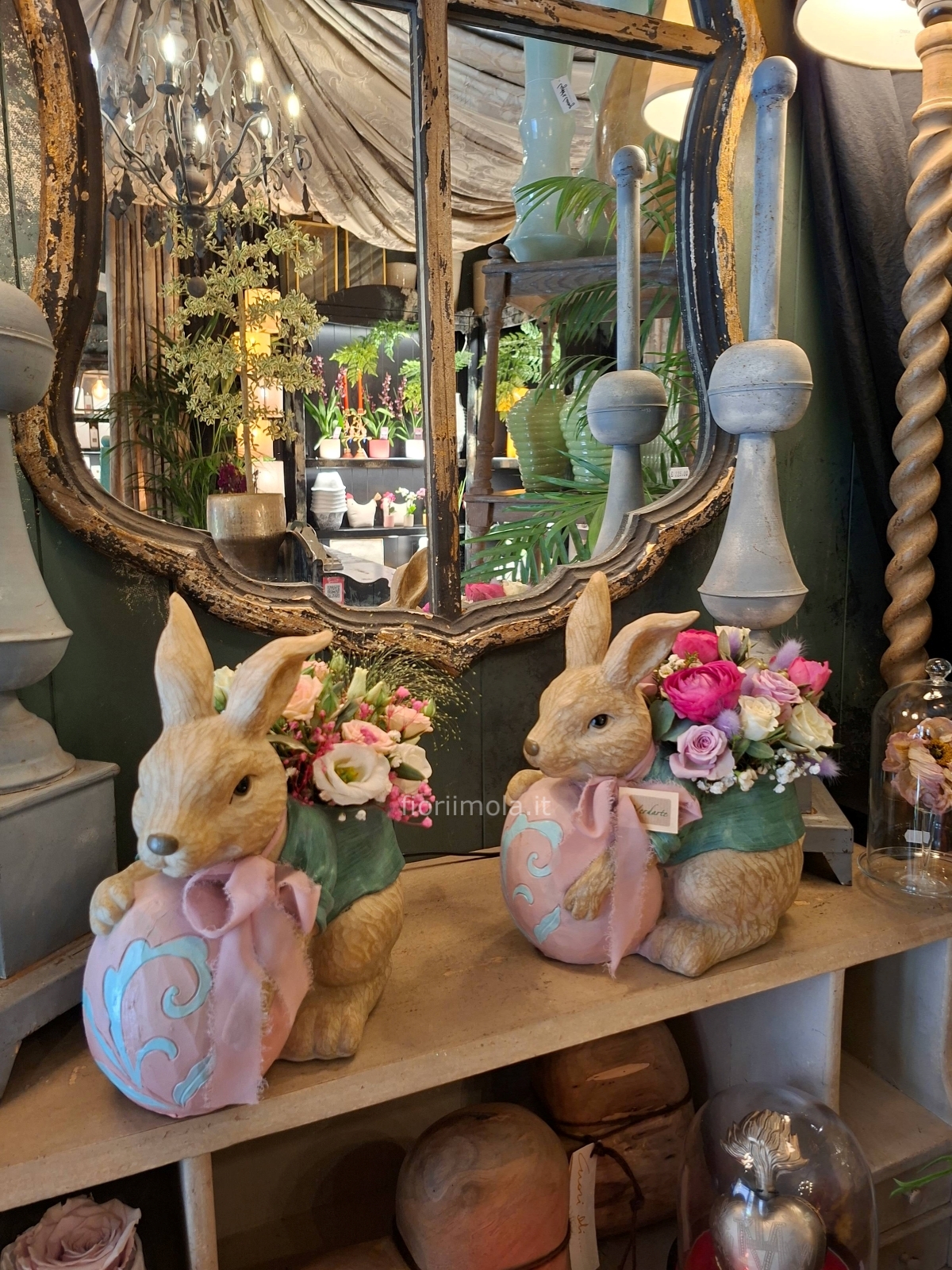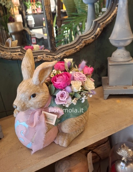 | Coniglio pasquale in resina con fiori di stagione Cod. 10755 |