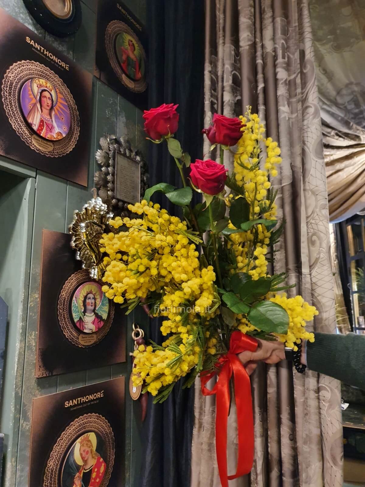 Mazzo rose rosse e mimosa